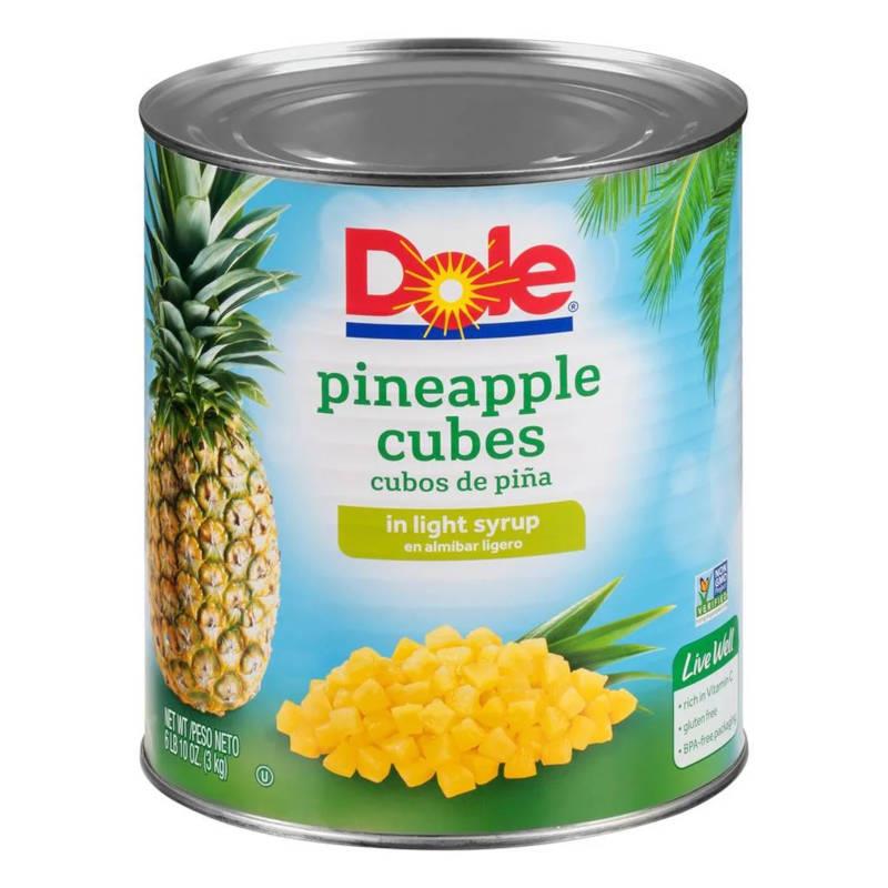 Ananas w kawałkach w lekkim syropie DOLE 3,05 kg (2,02 kg odsączony). Gotowy do użycia w gastronomii: do deserów, sałatek, sosów, koktajli i bufetów.