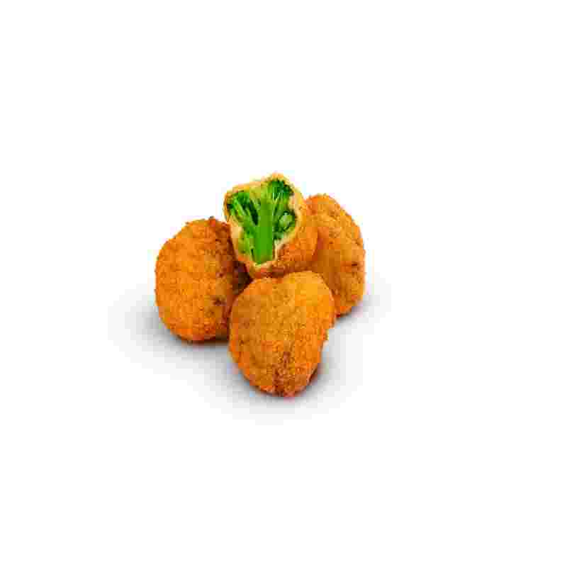 Składniki:Brokuły (70%), panierka (mąka, woda, mąka ziemniaczna, sól , drożdże, środek spulchniający: E450, zagęstniki: E412, barwniki: kurkuma).