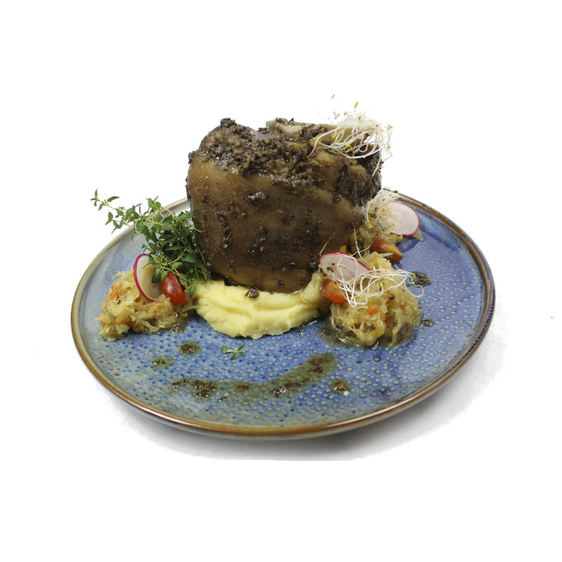 Golonka wieprzowa z kością z kminkiem gotowana metodą Sous Vide waga sztuki jest zmiennowagowa od 0,85 do 1,1 kg sztuka