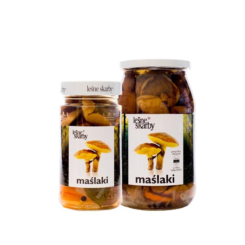 maślaki całe marynowane. Grzyby w polskiej gastronomii są bardzo dobrze znanym składnikiem wielu dań. -jako zakąska , dodatek do befsztyka tatarskiego-dodatek do zimnych płyt -farszy do mięs i ryb